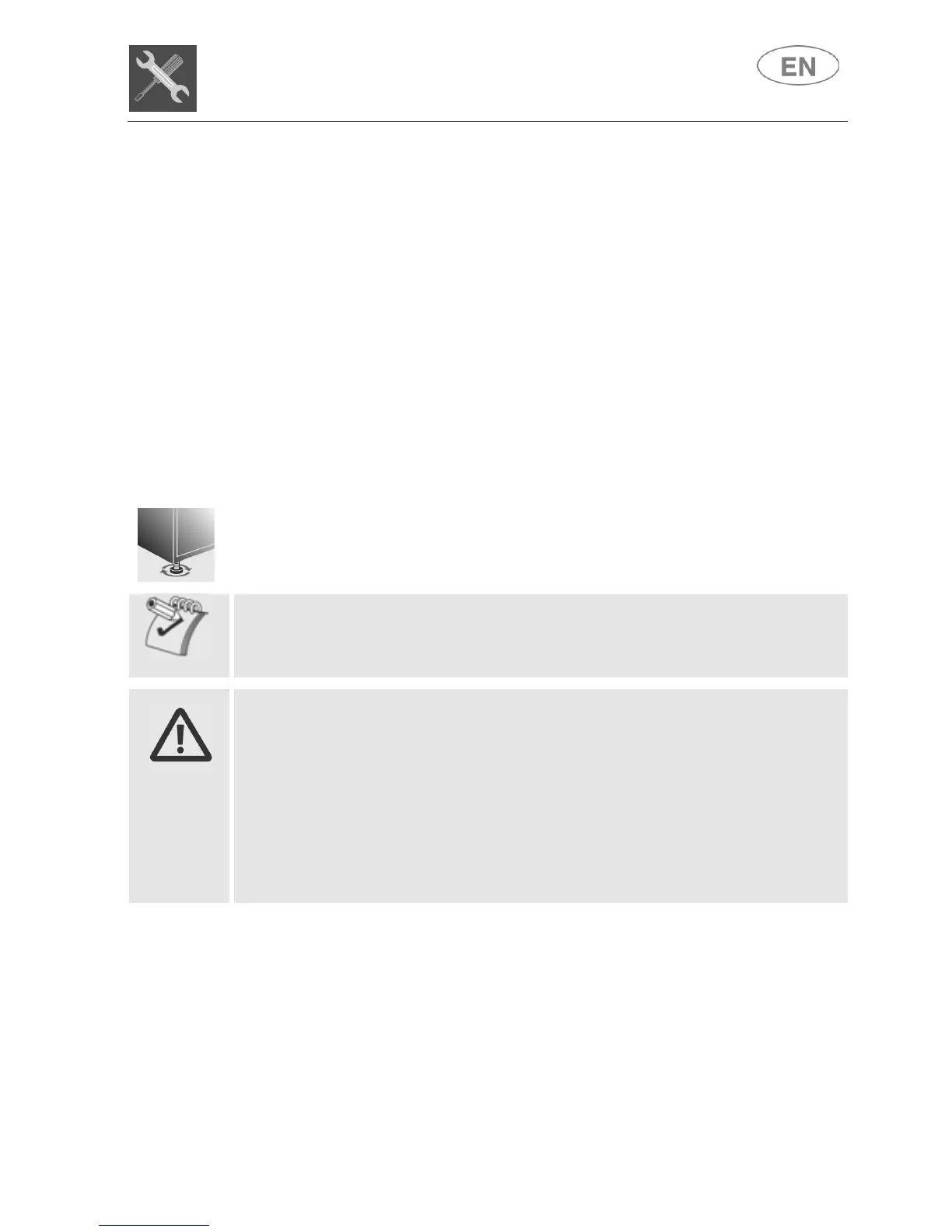Level the appliance on the floor using its adjustable feet. This operation