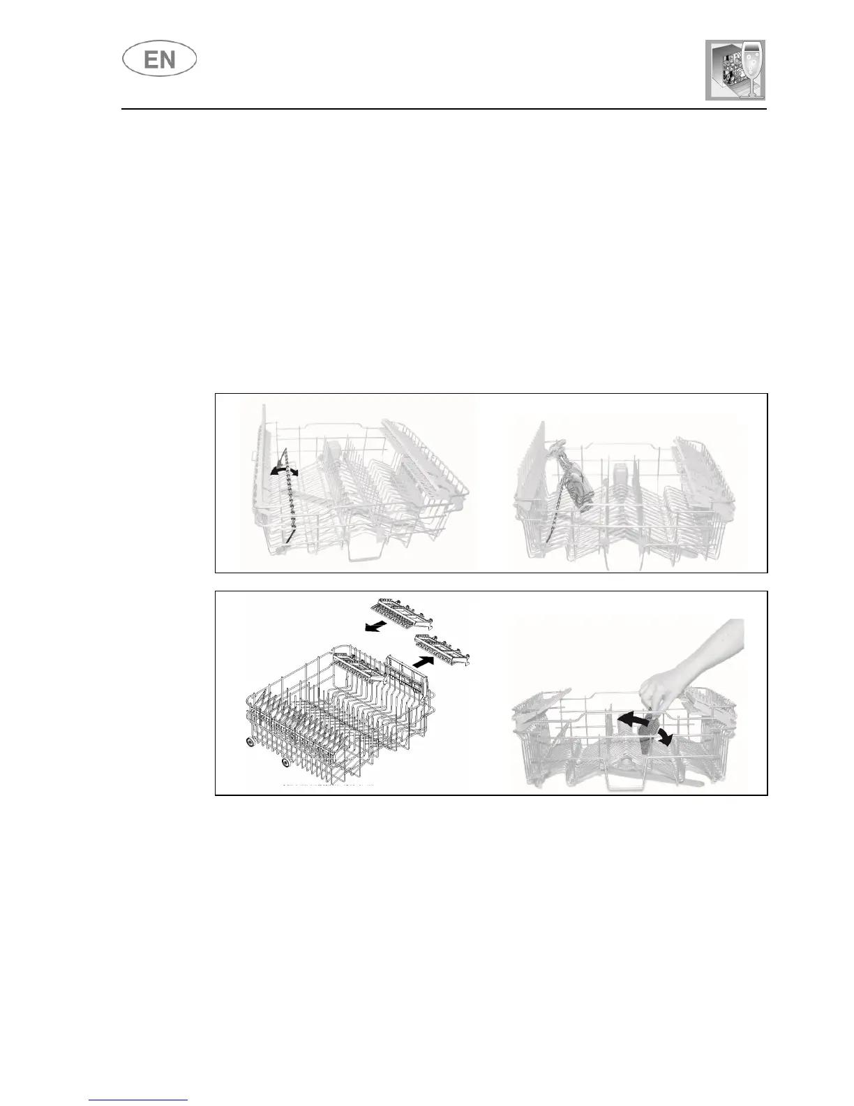 for teaspoons, pull out the sliding support. The racks can be