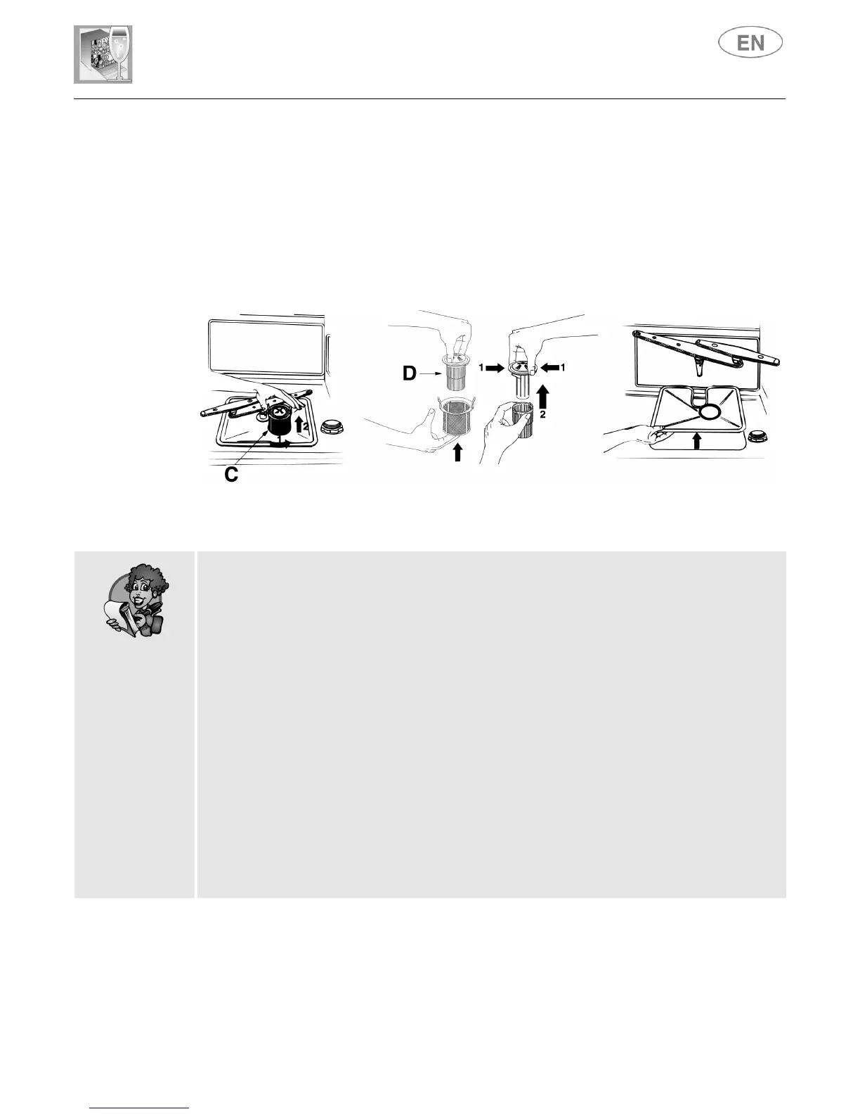 the filters in their seats, to avoid damaging the wash pump.