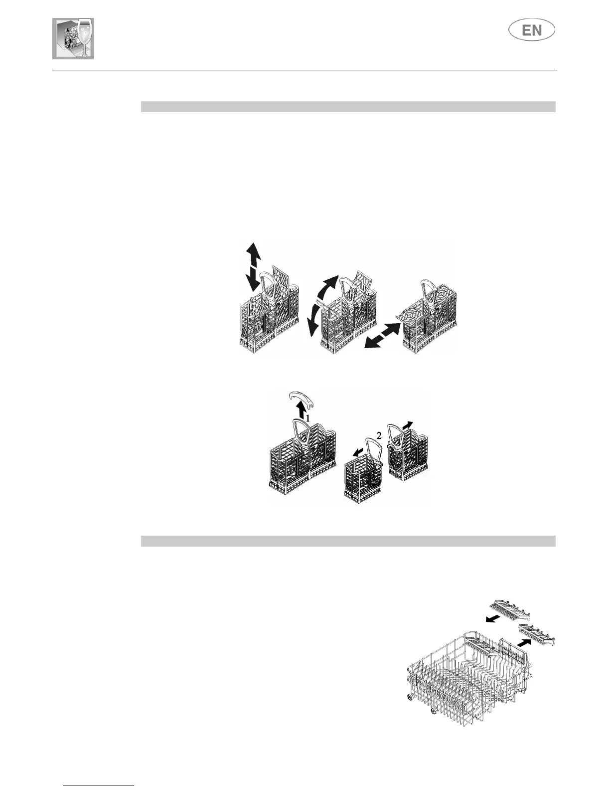 the upper basket is used in the lowermost position, it can also be loaded with serving dishes,