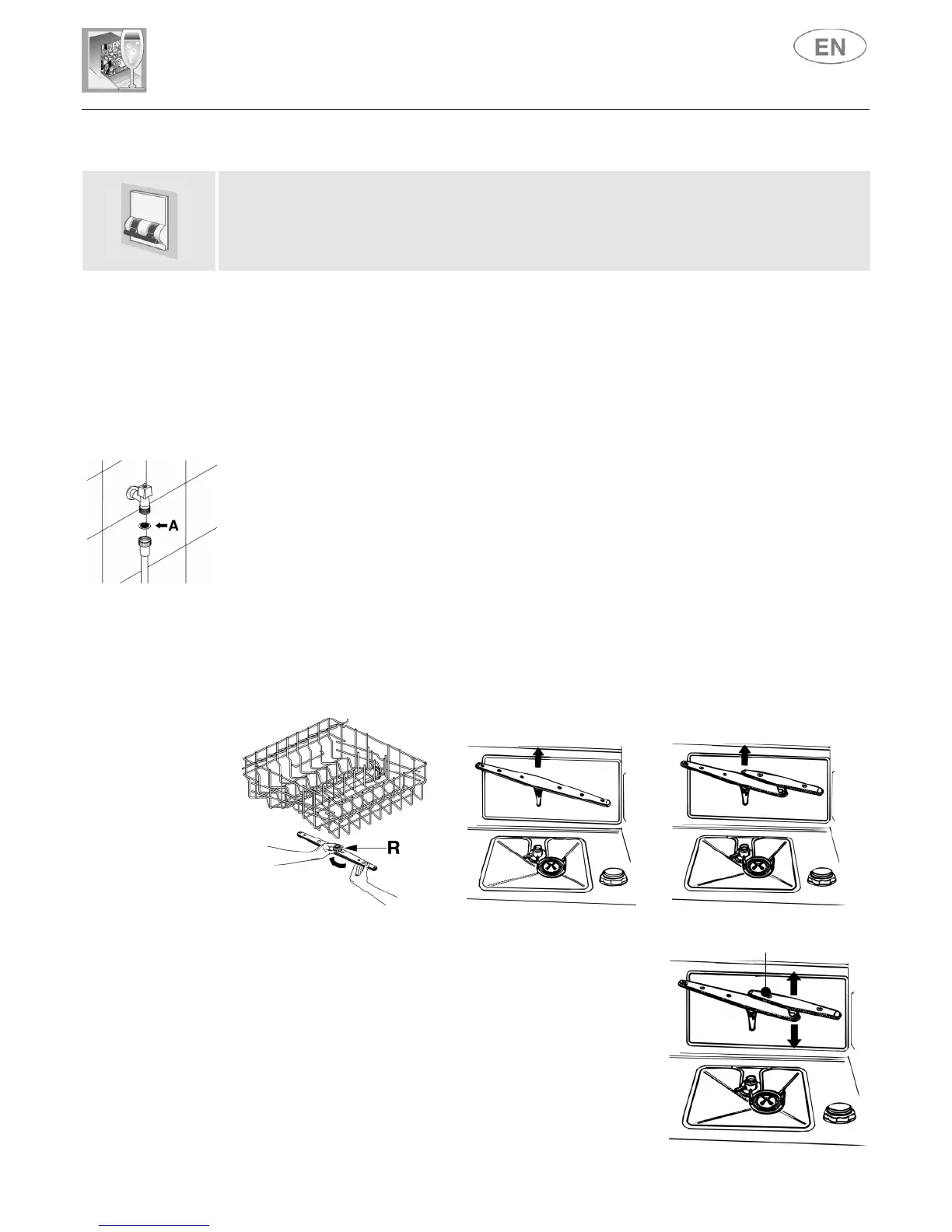 The spray arms can be easily removed for periodic cleaning of the nozzles, to prevent possible