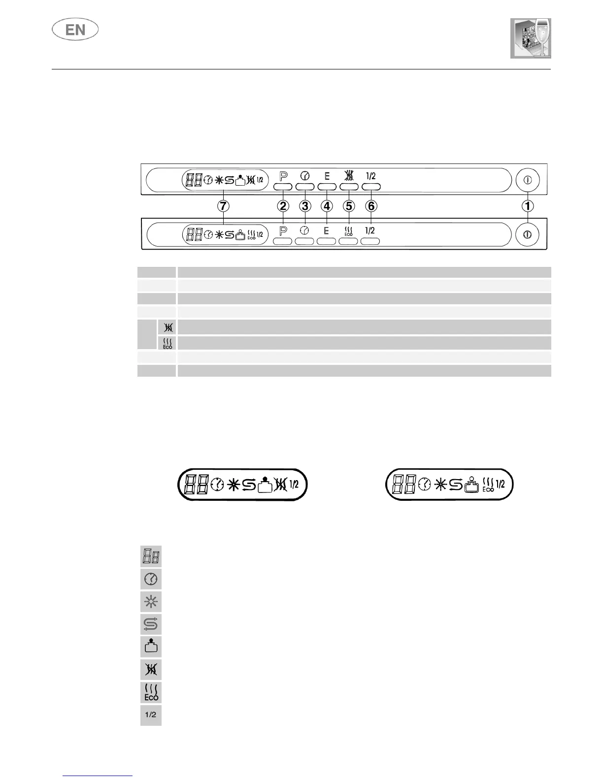 All the dishwasher controls are grouped on the upper panel.