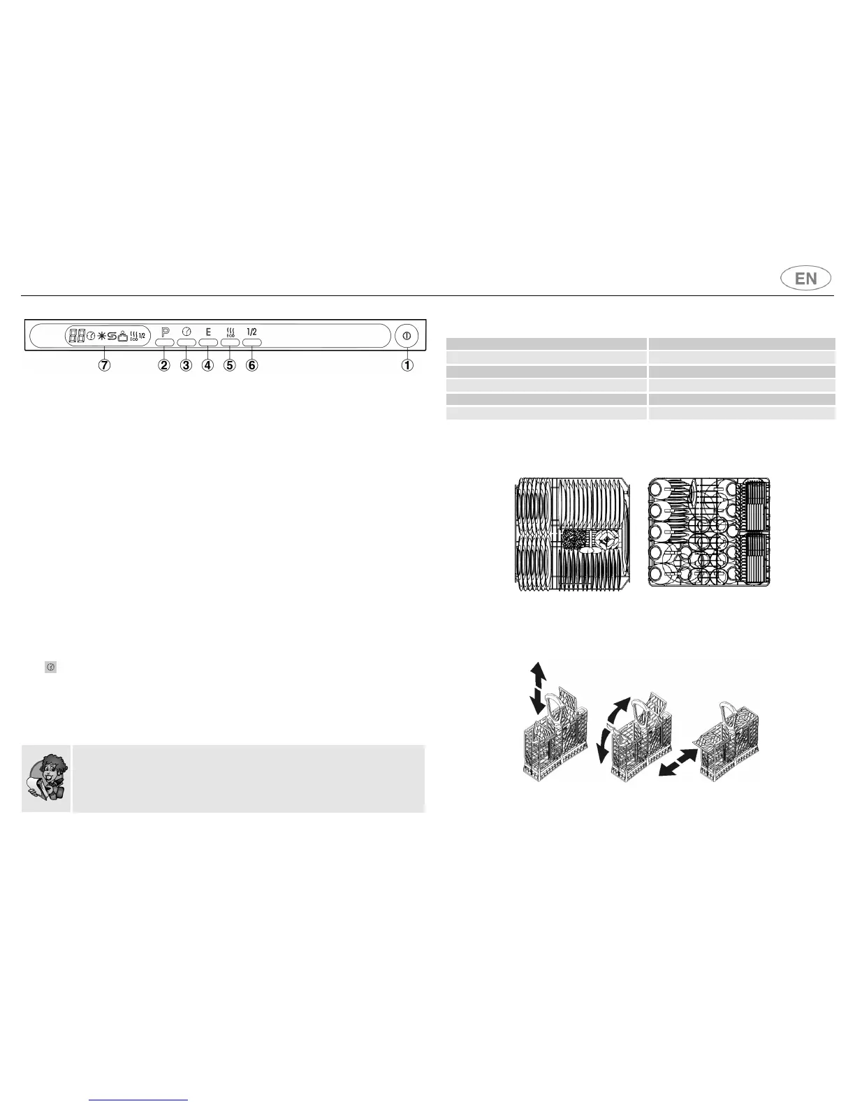 Rinse aid setting Depending on the model 3/4 or 4/6