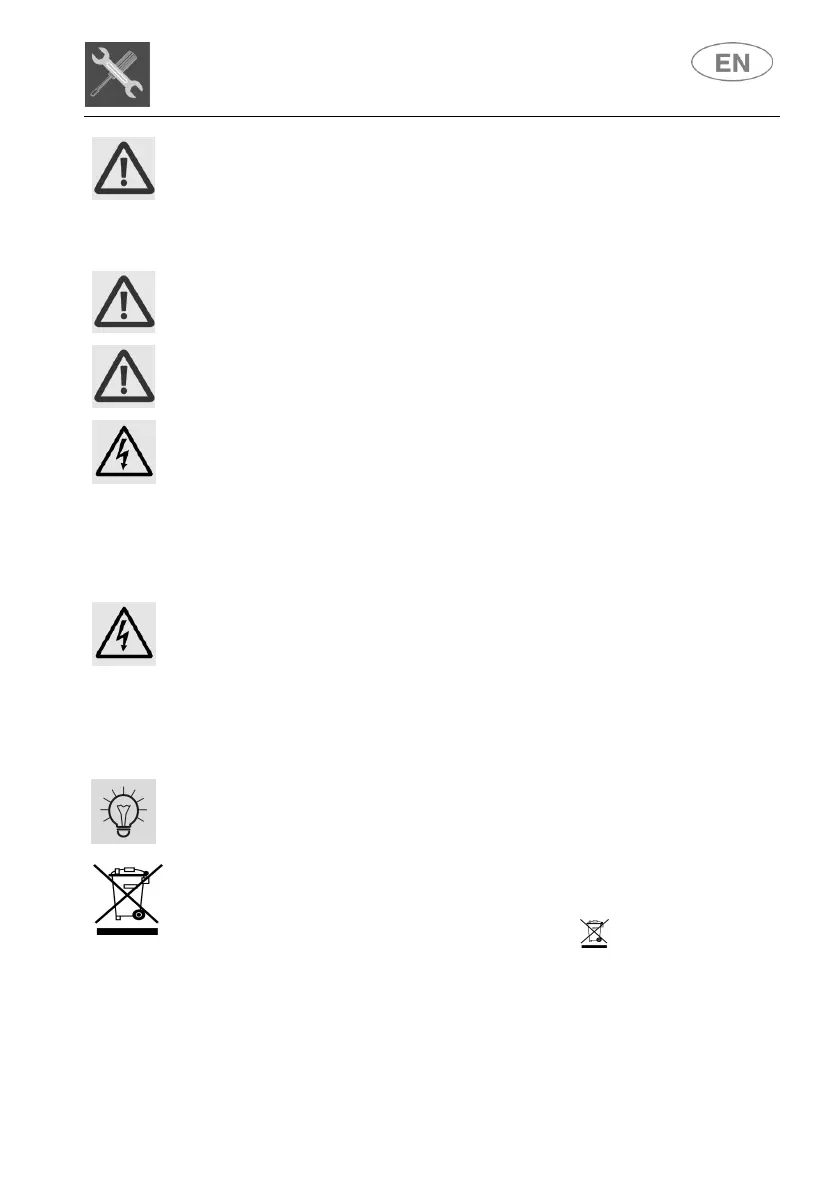 DISCONNECT THE PLUG OR TURN OFF THE MAINS SWITCH IN THE FIXED