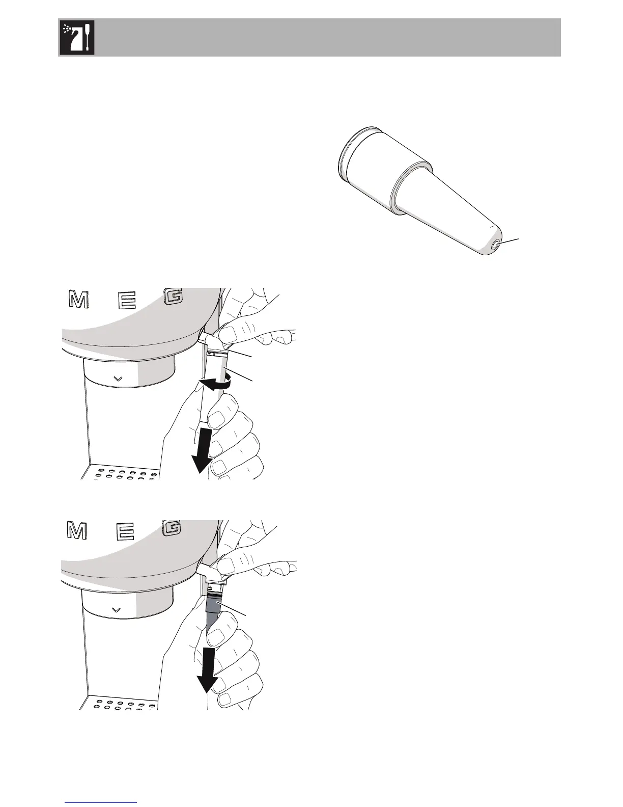 4. Remove the rubber nozzle (3) from the