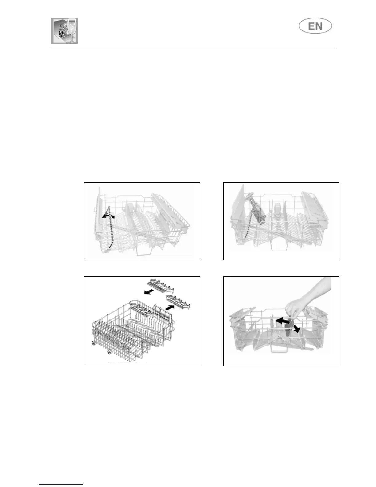 for teaspoons, pull out the sliding support. The racks can be
