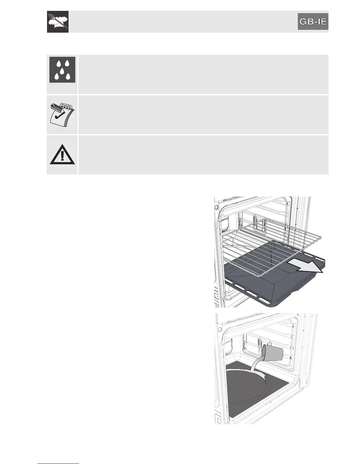 Carry out assisted oven cleaning operations only when the oven is cold.