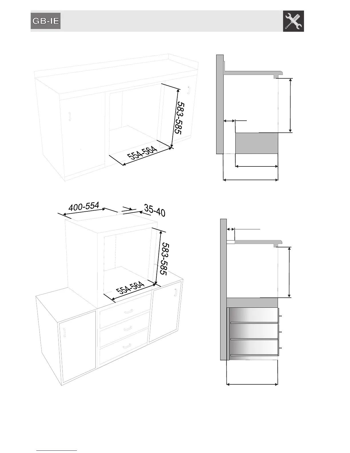 Smeg F610AN - Positioning Underneath Worktops; Positioning in Tall Units