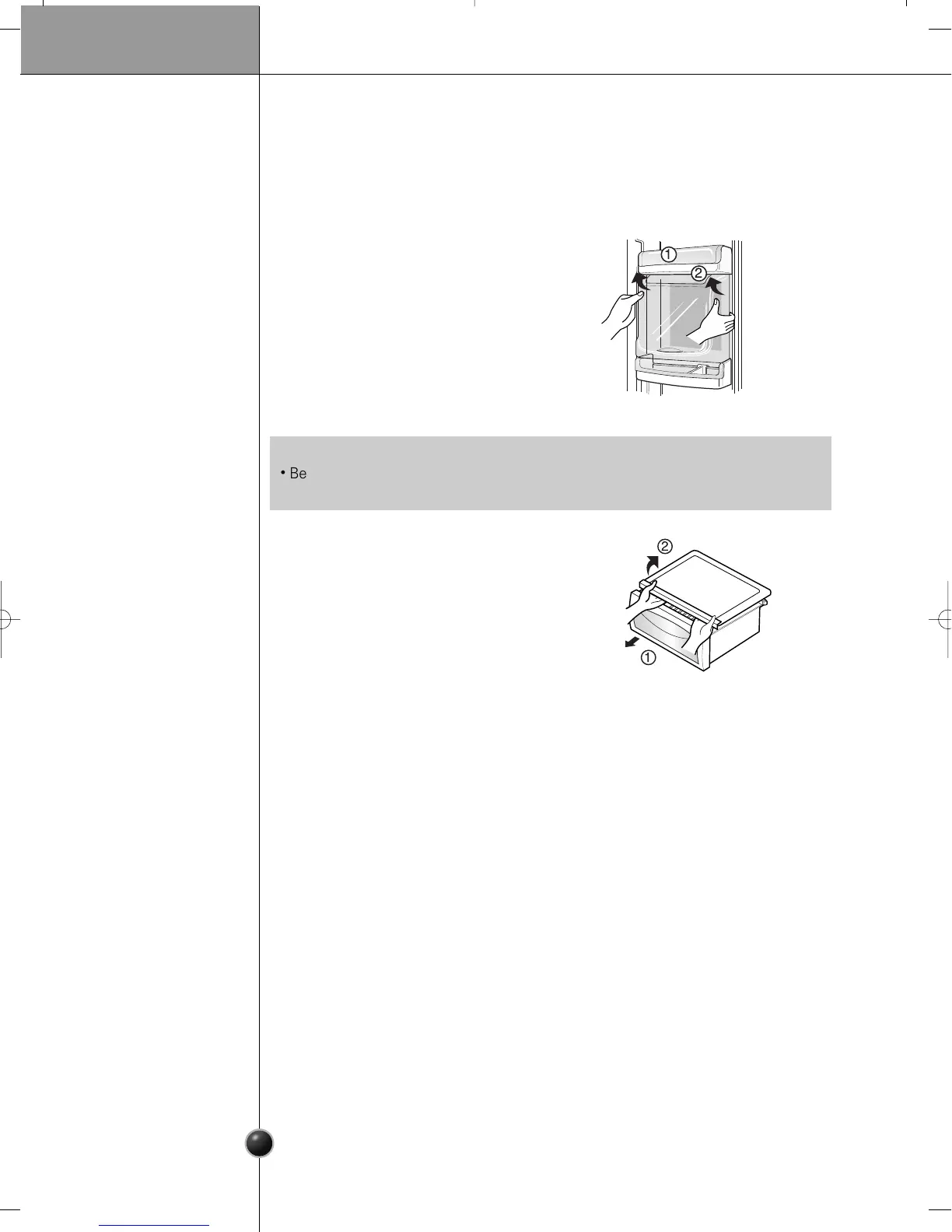Be sure to remove parts from the refrigerator door when removing the vegetable