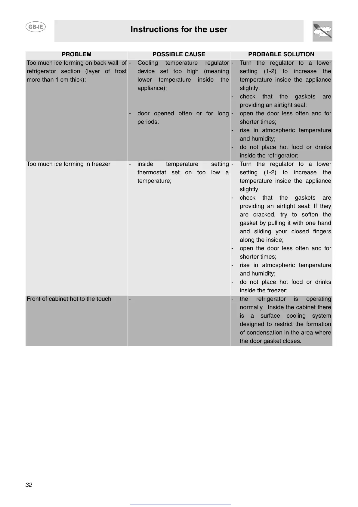 Too much ice forming in freezer - inside temperature setting