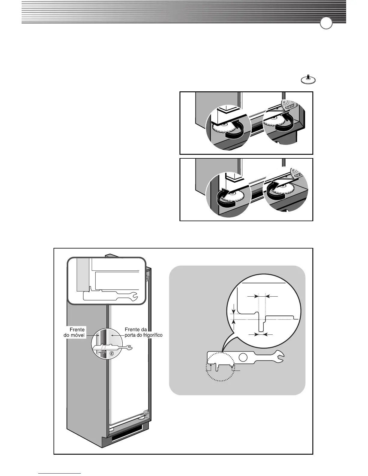 6. Adjust the horizontal/vertical level of the refrigerator by turning the level adjusting leg( ).