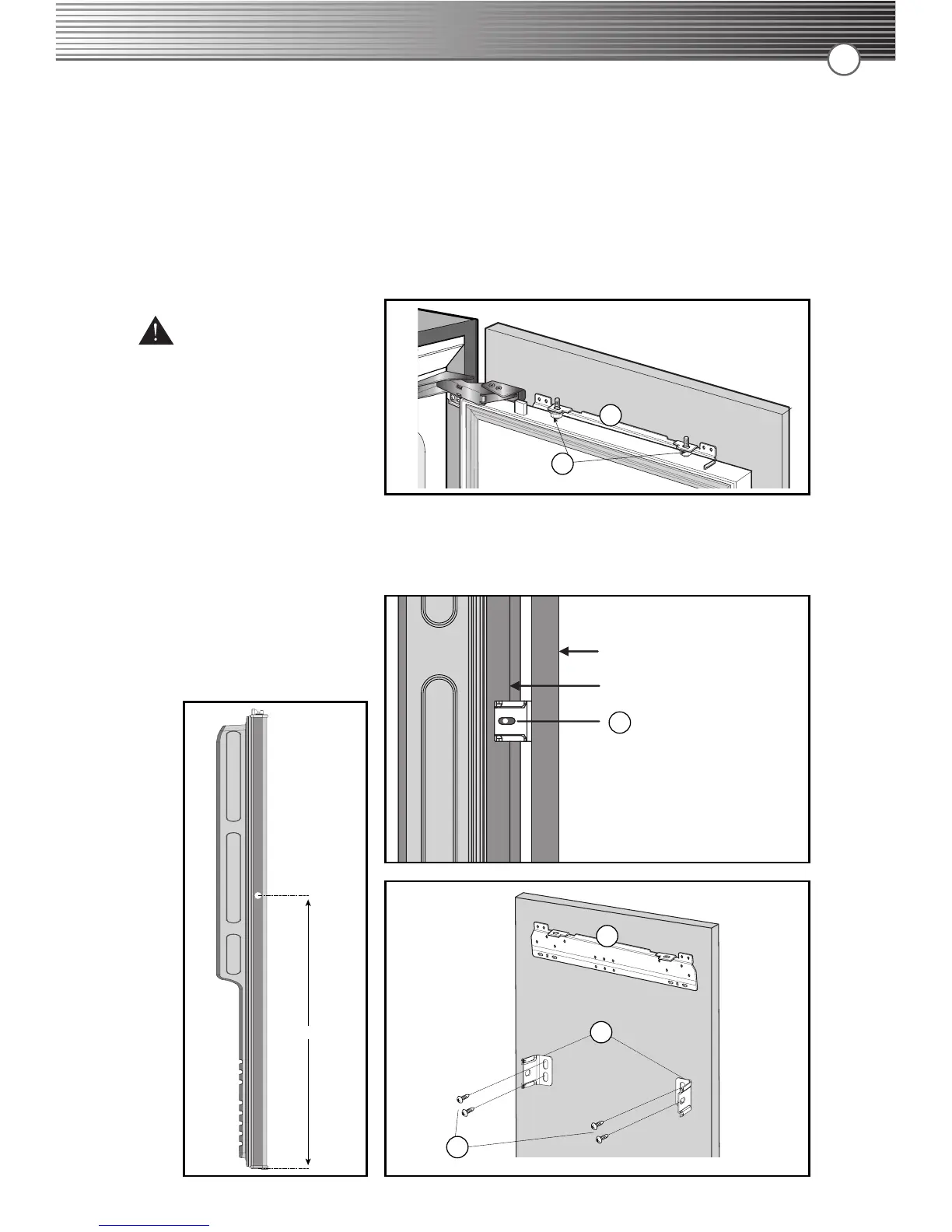 left/right (four spots) of the furniture door with the wood screw ⓑ. (Figure 12)