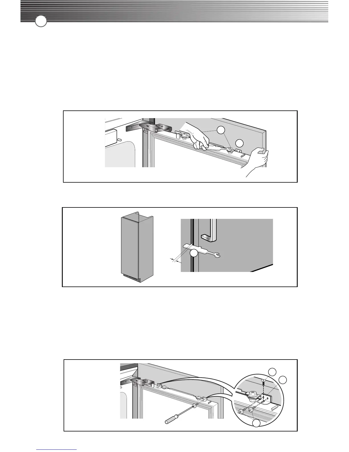 19. If the dimension is not correct, loosen the height adjusting nuts ⓓ, the door screw ⓐ