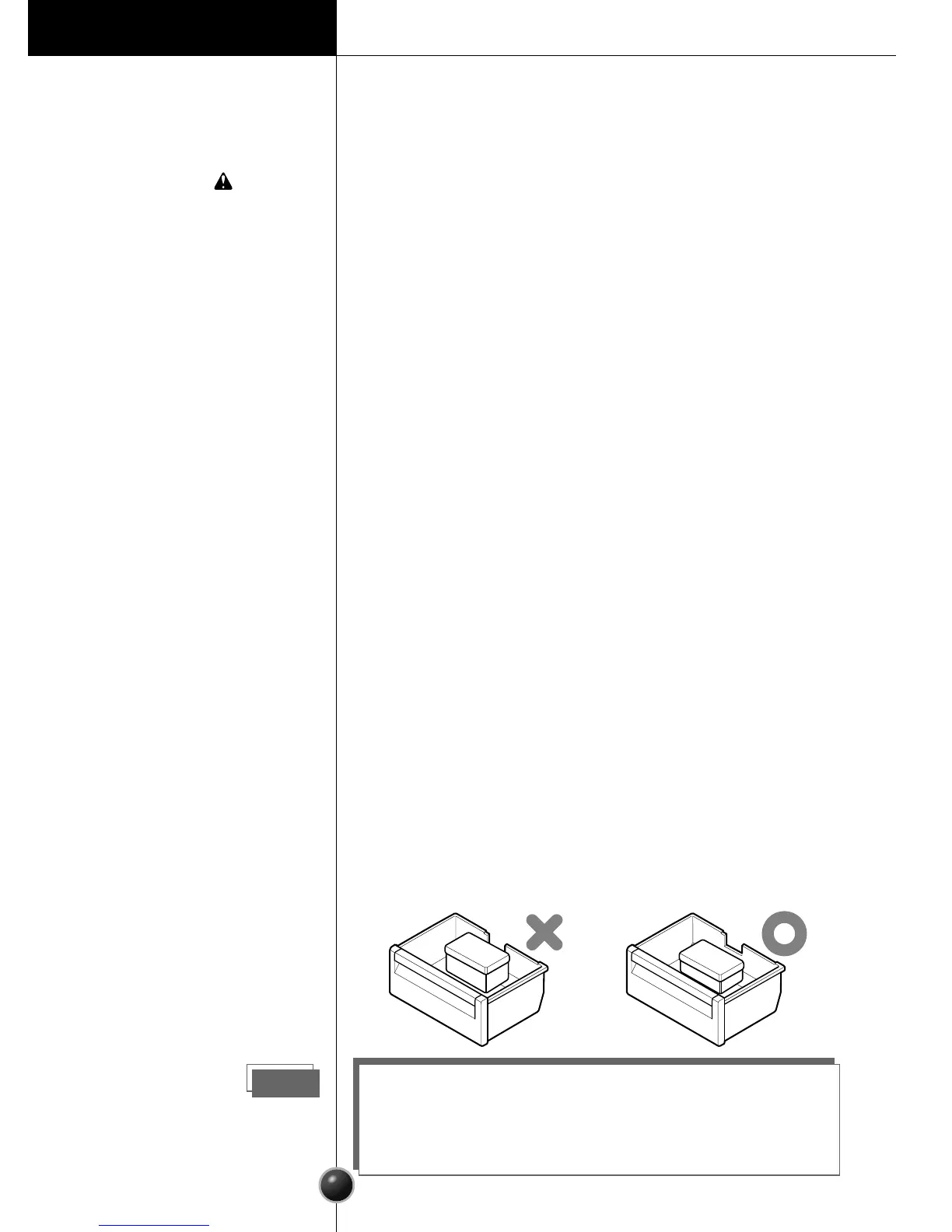 Do not put in front of the air hole of the upper drawer