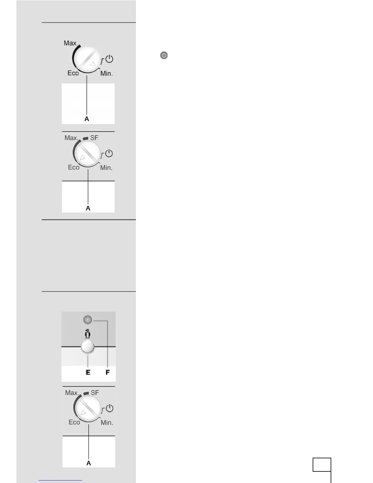 • Recommended setting of the thermostat knob is to Eco