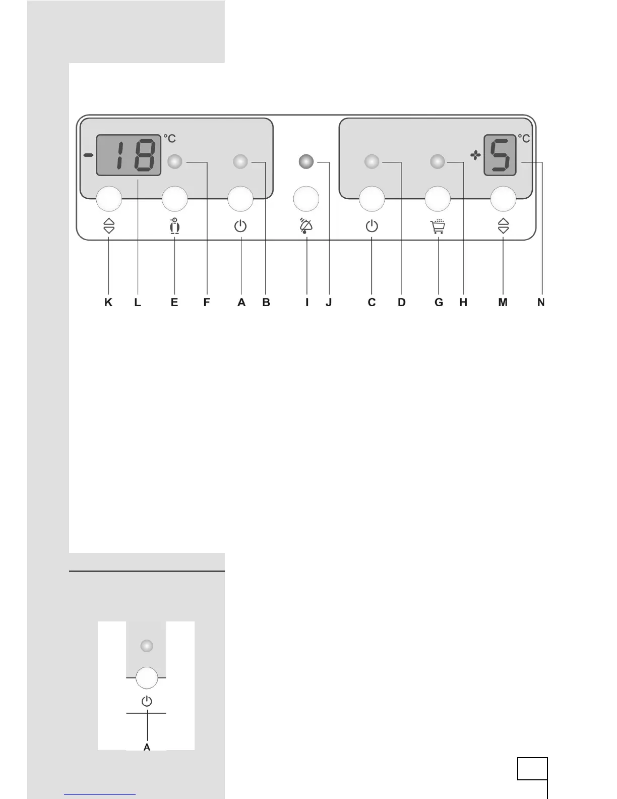 - Switch on or switch off the freezer by pressing the A button