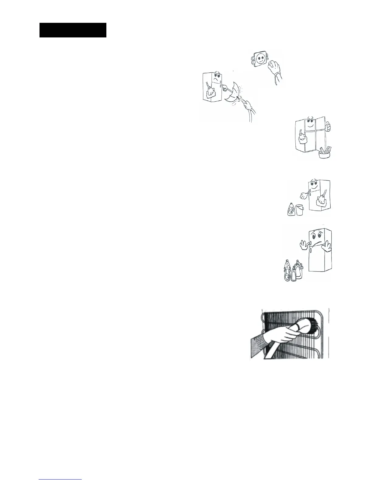 • Make sure to unplug the fridge before starting to clean it.