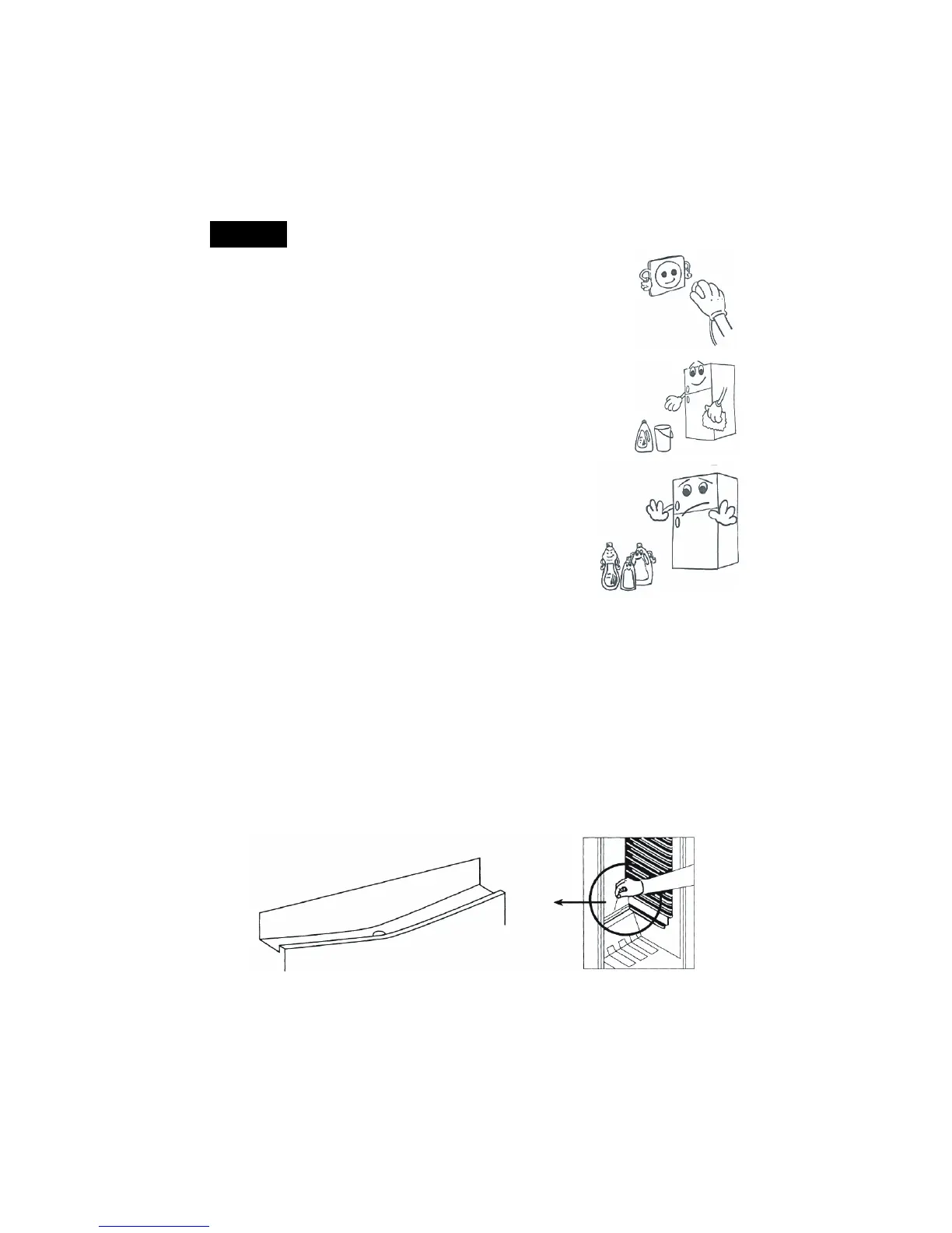 • The evaporating tray and water drain hole (back of the refrigerator crisper shelf) should