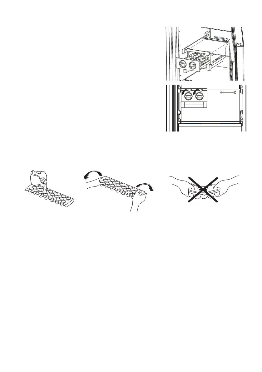 • Fill the ice tray with water and place in freezer compartment.