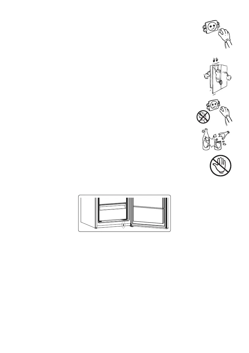 • Do not touch frozen goods with wet hands. Do not eat ice-cream or