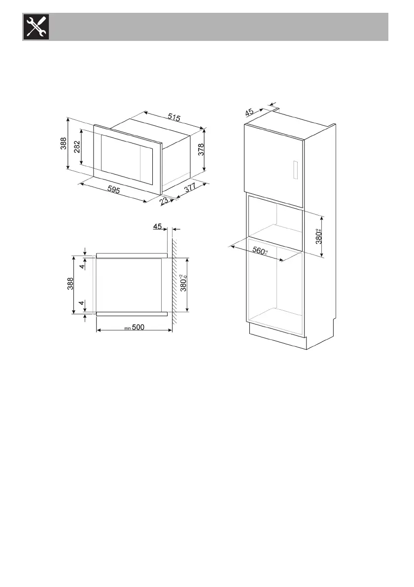 Appliance overall dimensions (mm)