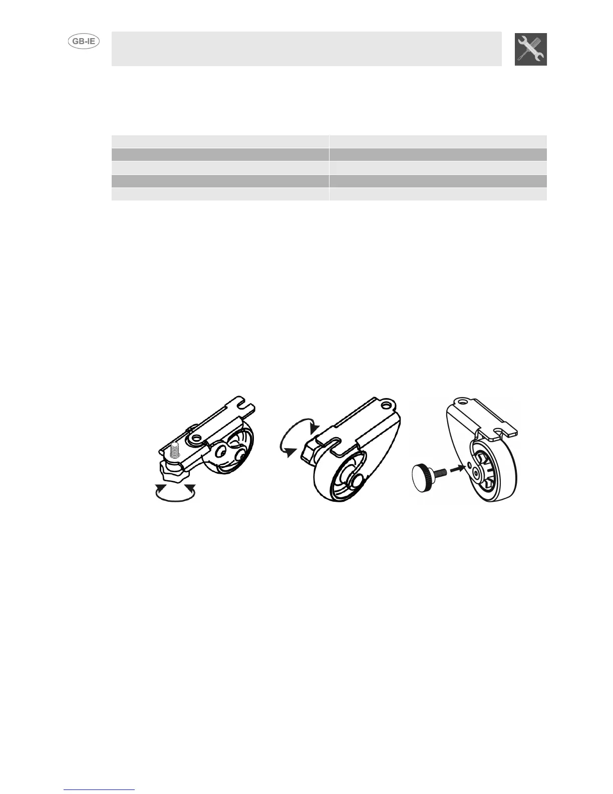 Once it has been levelled, the appliance can be fixed in place by turning the screws on the front wheels