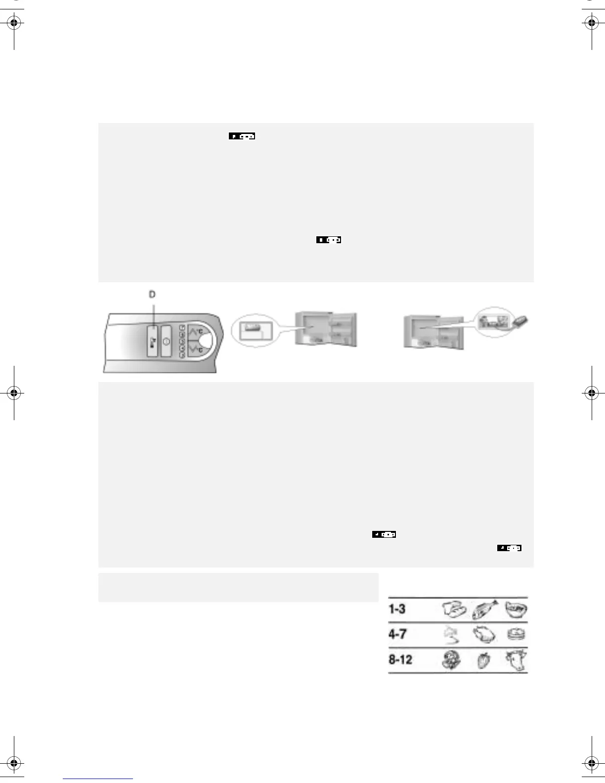already frozen food. Leave a space of approx. 20 mm around packages (