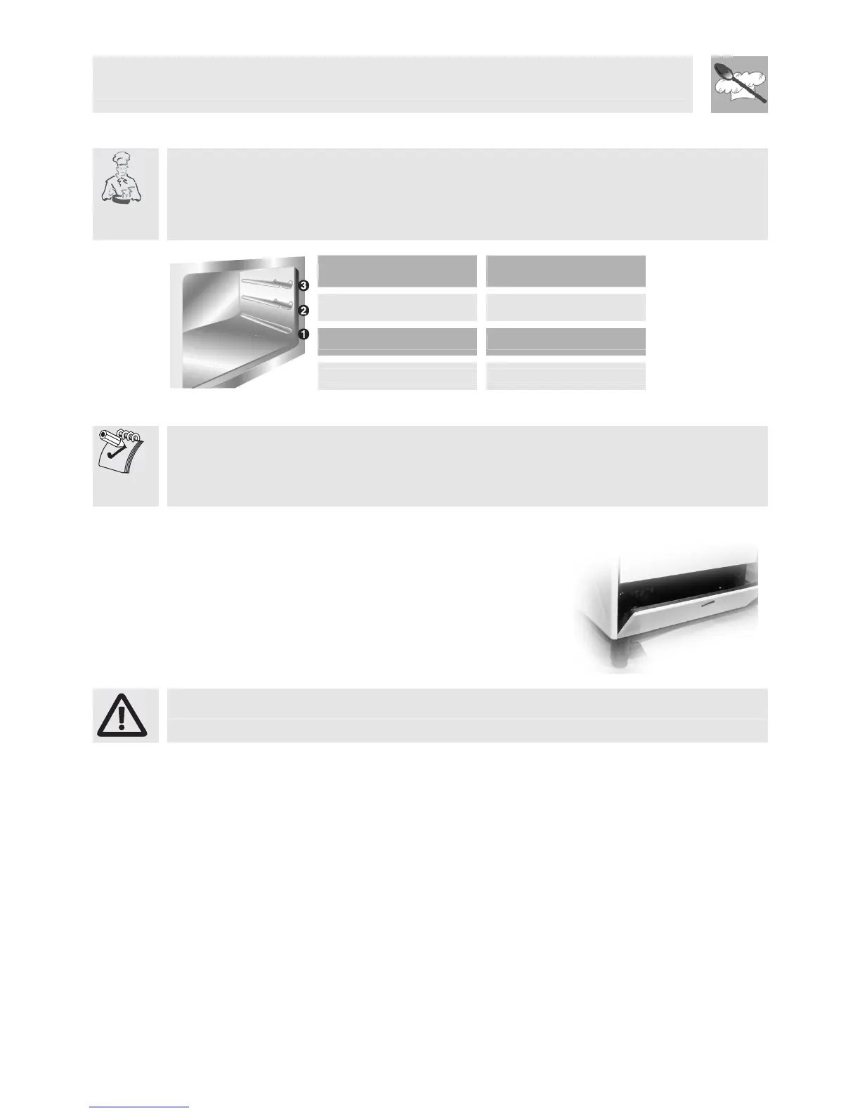 • When using the oven, remove all unused baking sheets and shelves from the interior.