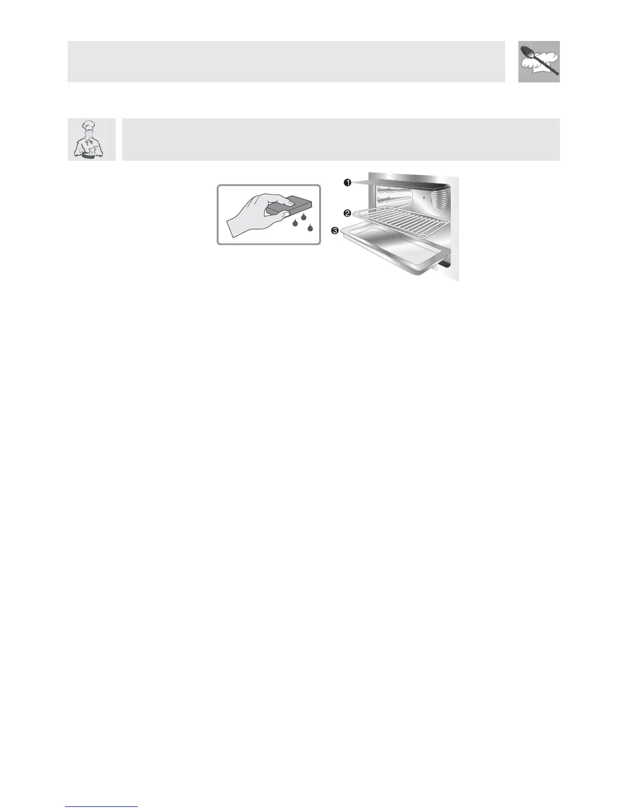 • Clean the oven grill with hot water and non-abrasive detergent. Rinse and dry.