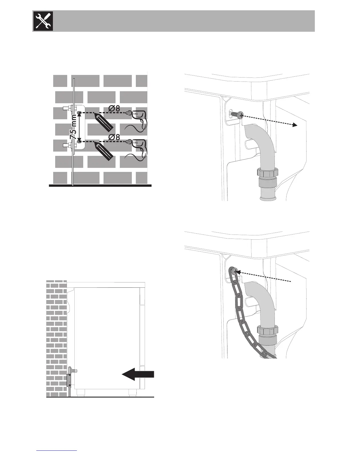 9. Push the cooker towards the wall, and at
