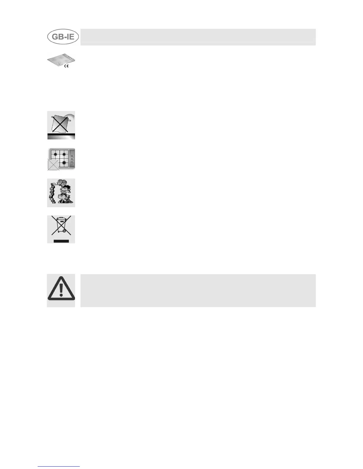 THE HOB IS TO BE USED BY ADULTS ONLY. DO NOT LET