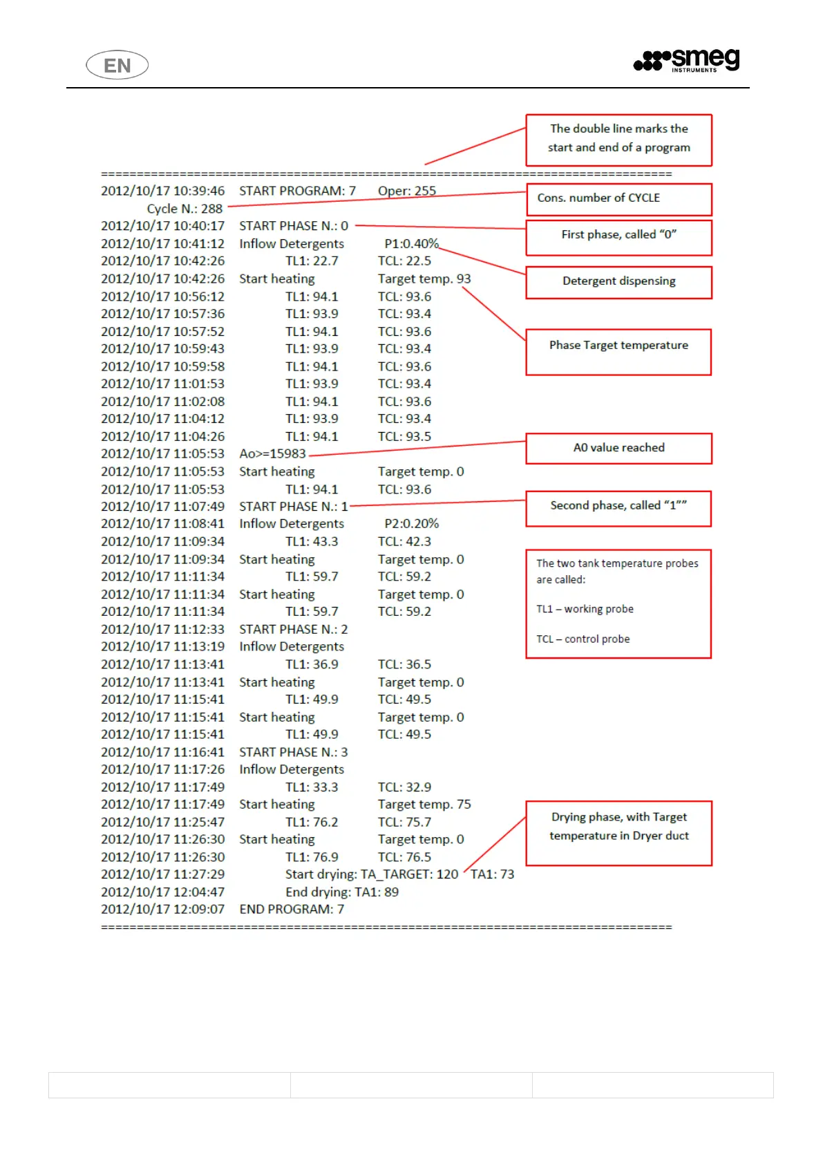 fig. 34 Example of cycle data stored in the appliance’s memory.