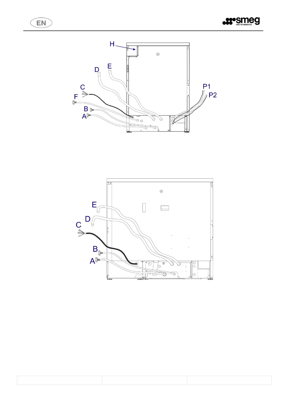 On the GW4190 series, the detergent intake connections “P1” and “P2” are inside the side cabinet and are accessed