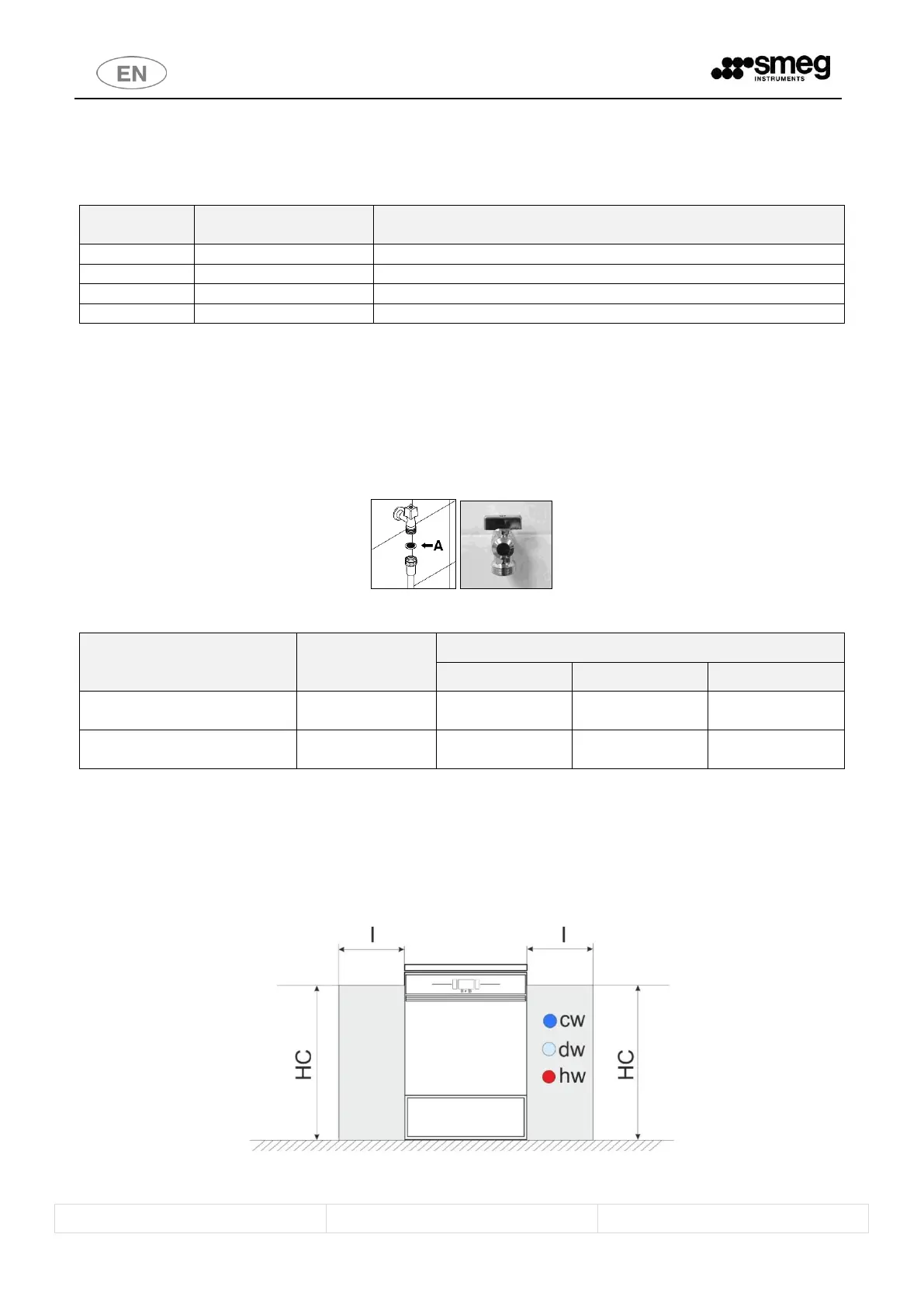 Water supply taps must be positioned close to the appliance, in a position accessible to the user. With reference to