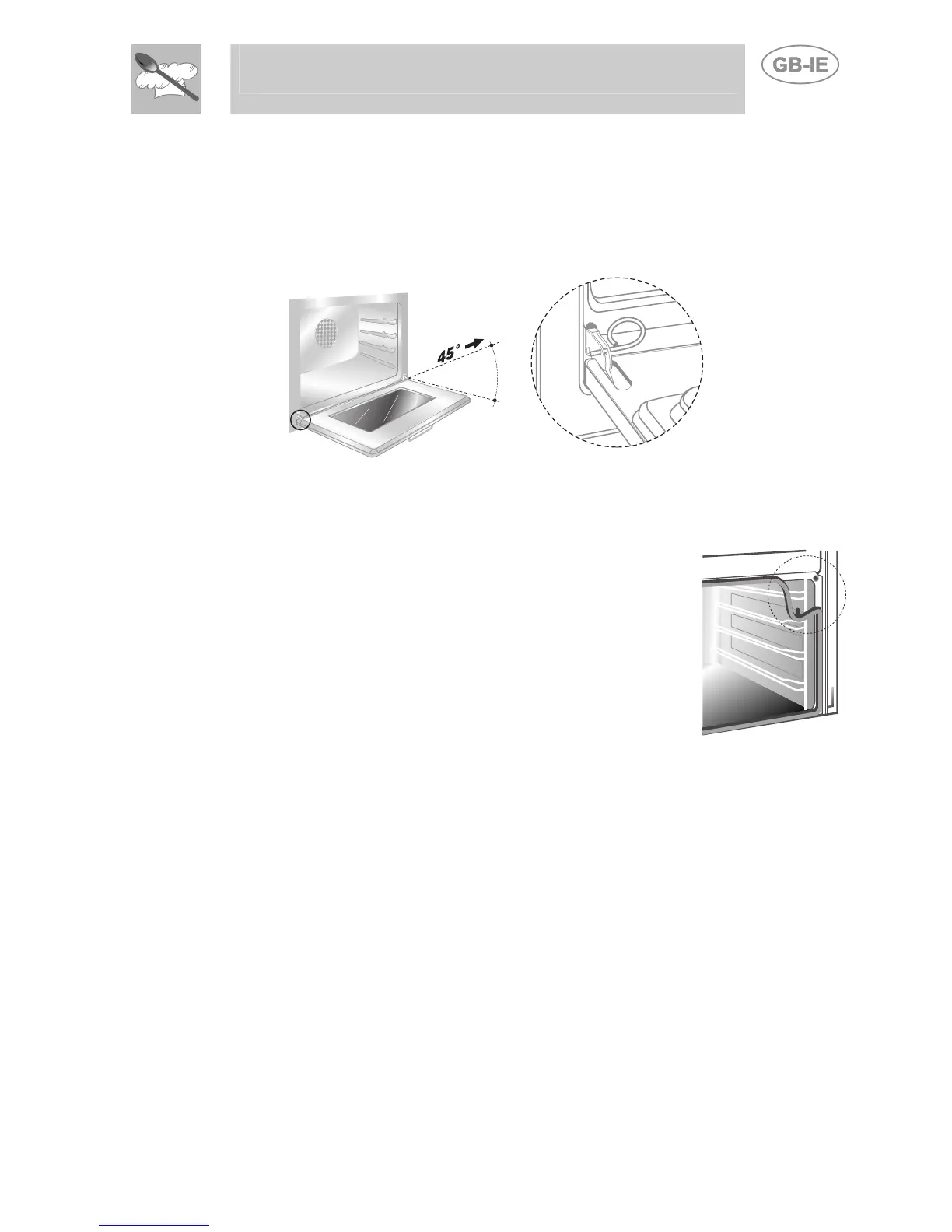 the inside. Close the door to an angle of about 45°, lift it and remove it