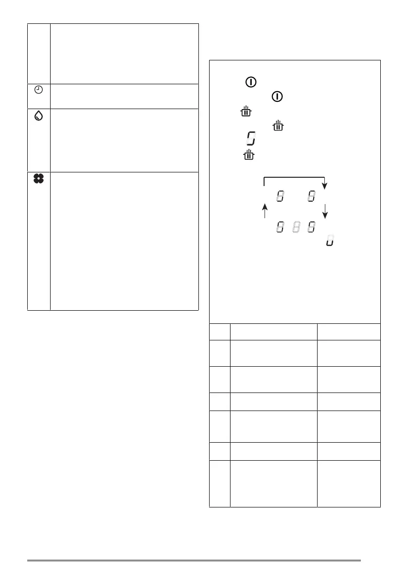 The charcoal (odour) filter symbol lights up for 1