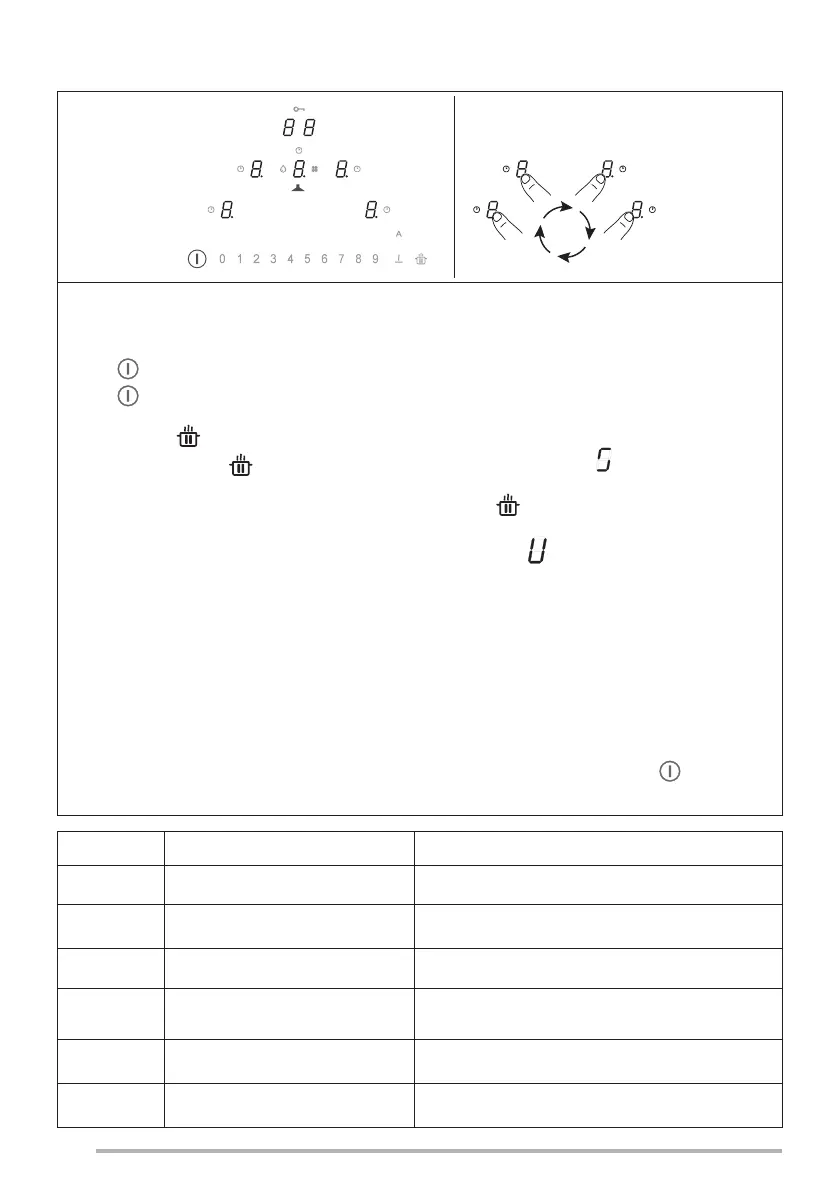 - Continuing to hold , press the 4 Digits for the cooking areas ( ) one at a time in a