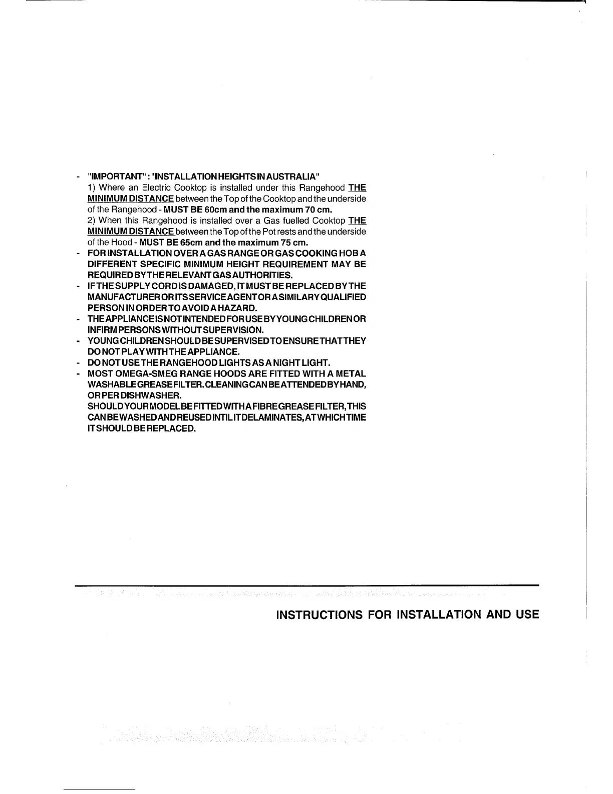 Smeg K181X90 - Important Installation Information; Installation Heights in Australia; Installation Guide