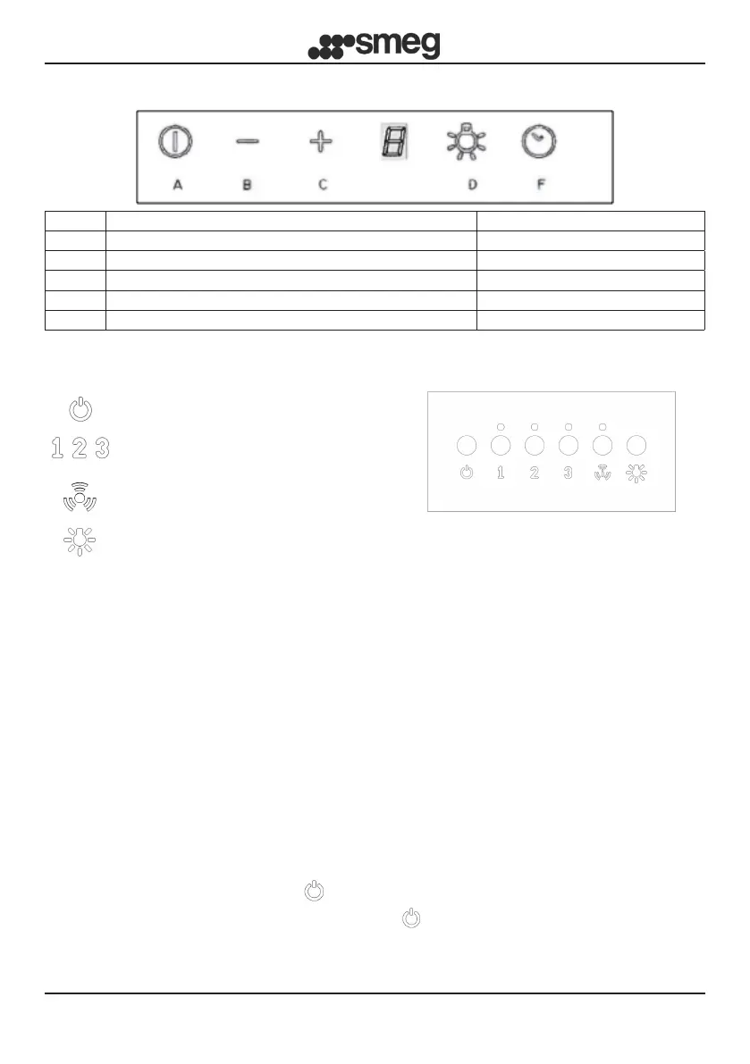A Accende / Spegne il motore di aspirazione. Visualizza la velocità impostata