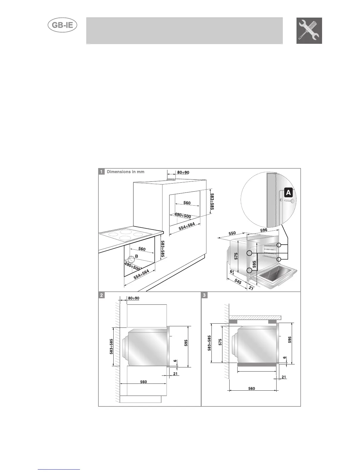 allowing for a clearance of 80 to 90 mm at the top and sides of the