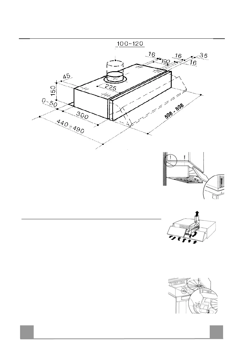 • To fix the hood onto the cabinet use the 44,4 mm long screws