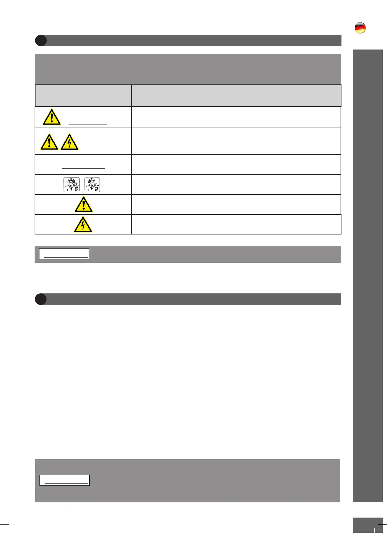 Das Symbol “ACHTUNG”, begleitet von einem Gefahrensymbol, zeigt eine poten-