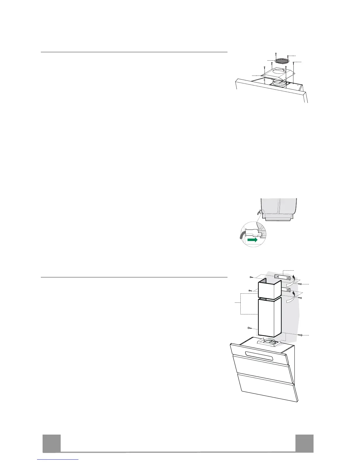 • Fix the lower part laterally to the hood body using the 2 screws
