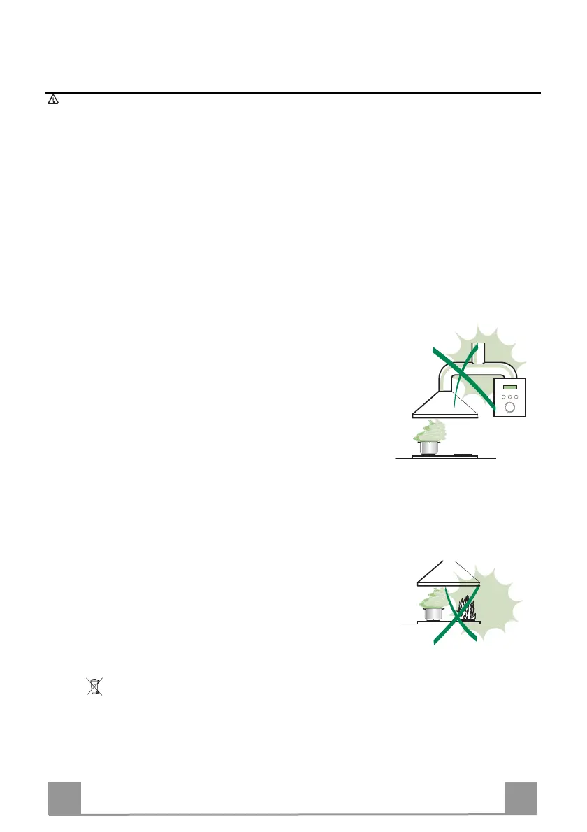• Ne pas connecter la hotte à des conduites d’évacuation de fumées issues d’une combustion tel que