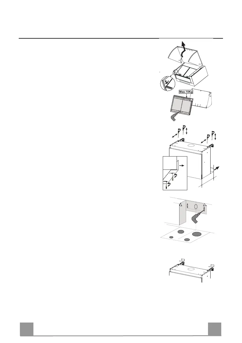 • Повесить вытяжку на металлические скобы.