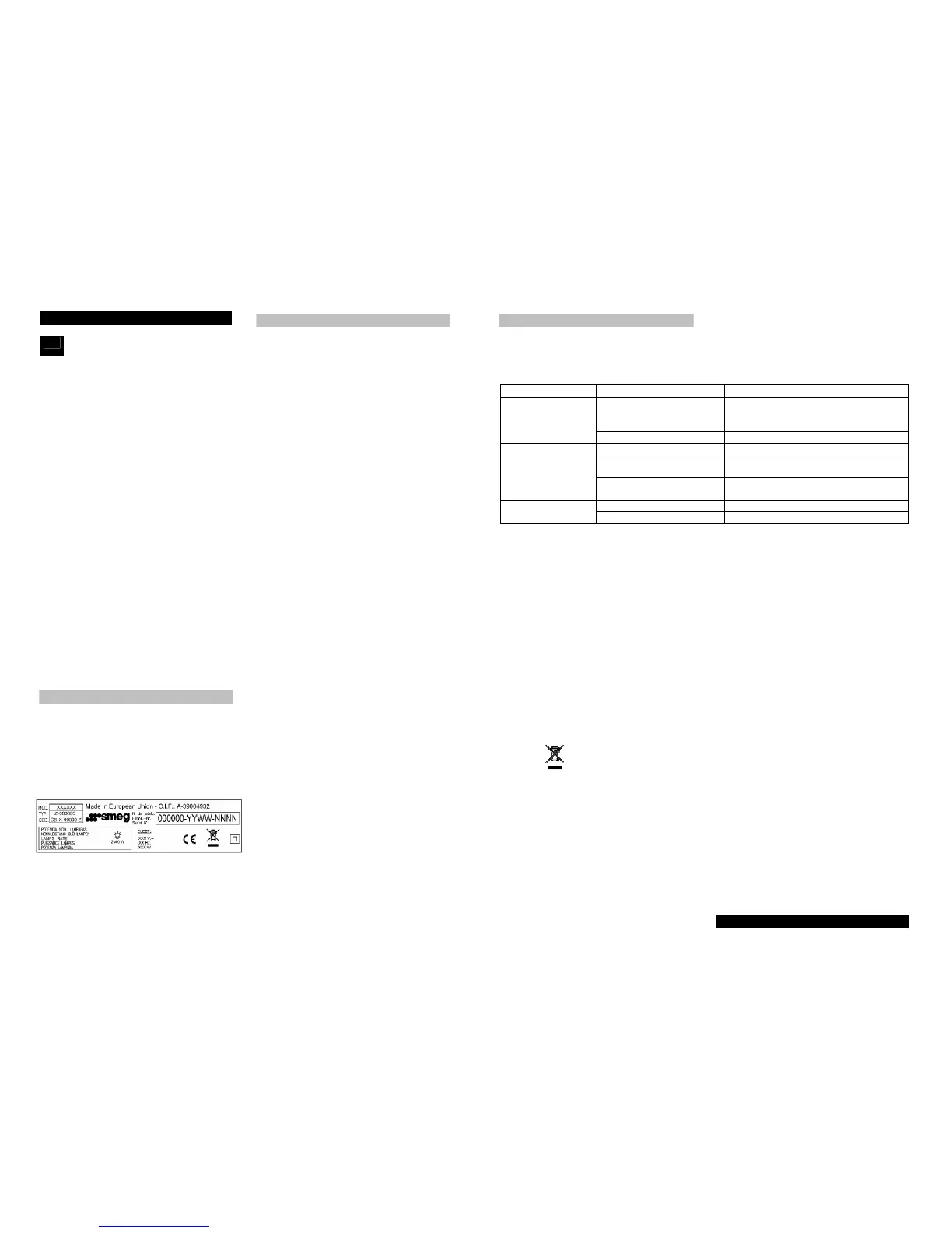 SMEG si riserva il diritto di apportare ai propri dispositivi le correzioni ritenute opportune oppure