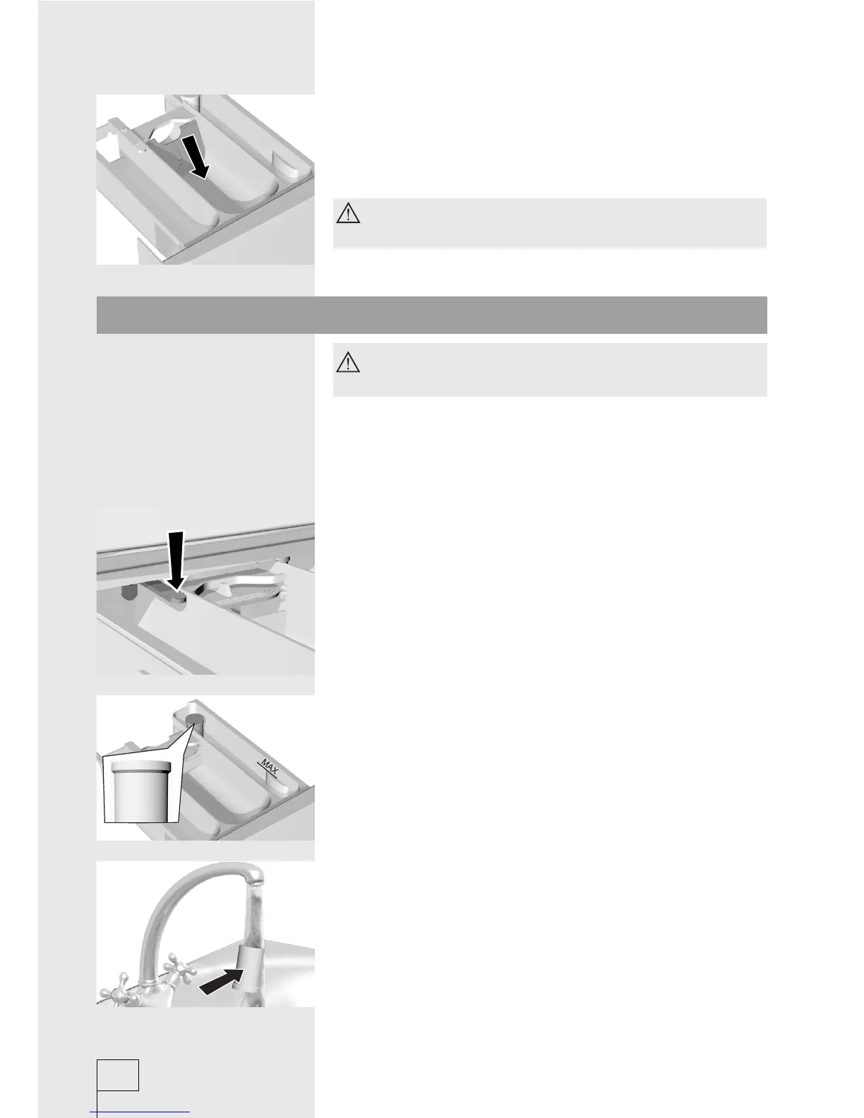 • If necessary, clean the detergent dispenser. Pull it out from its