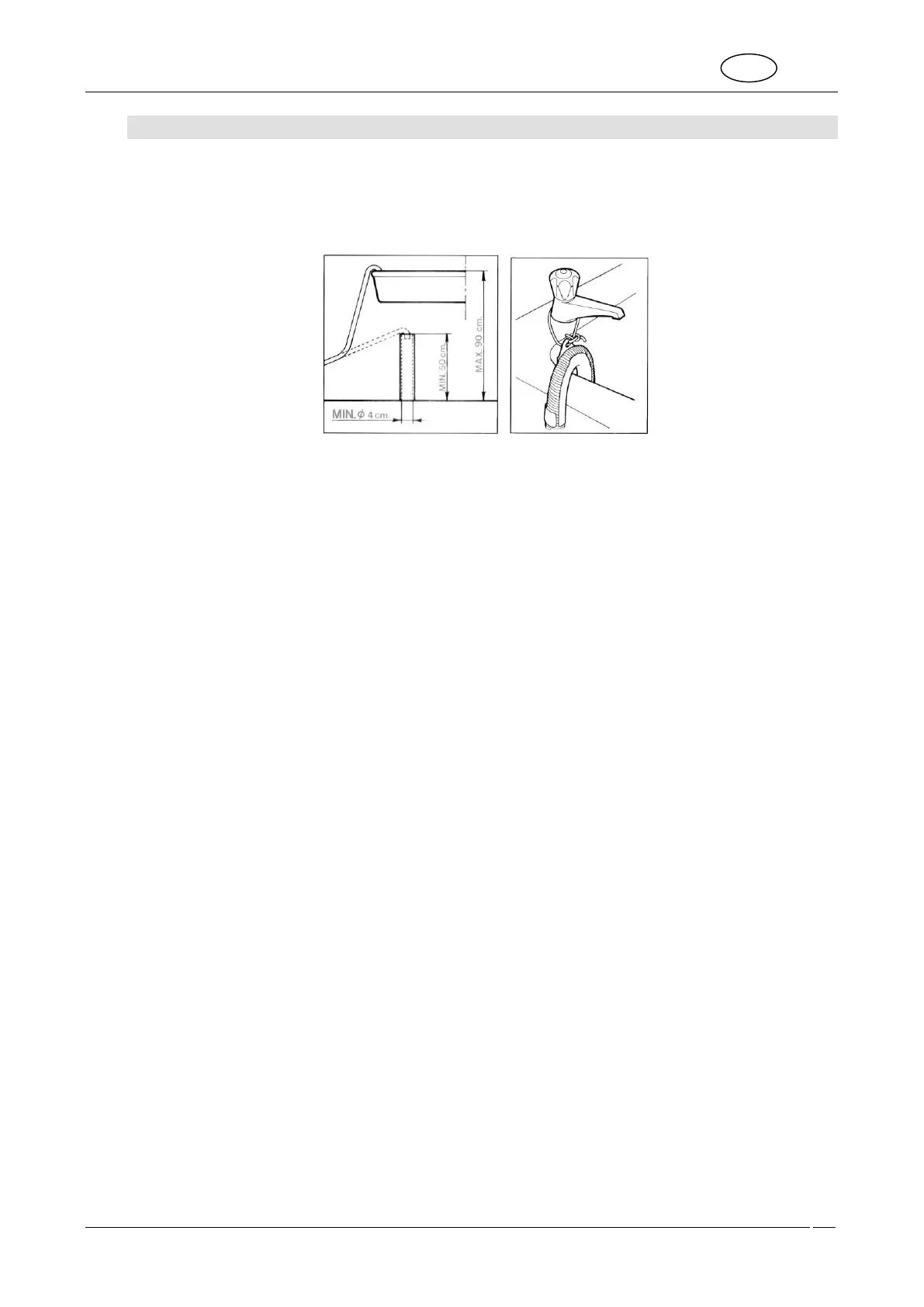 2. In all cases, check that the end of the drain hose is securely fixed to pre-