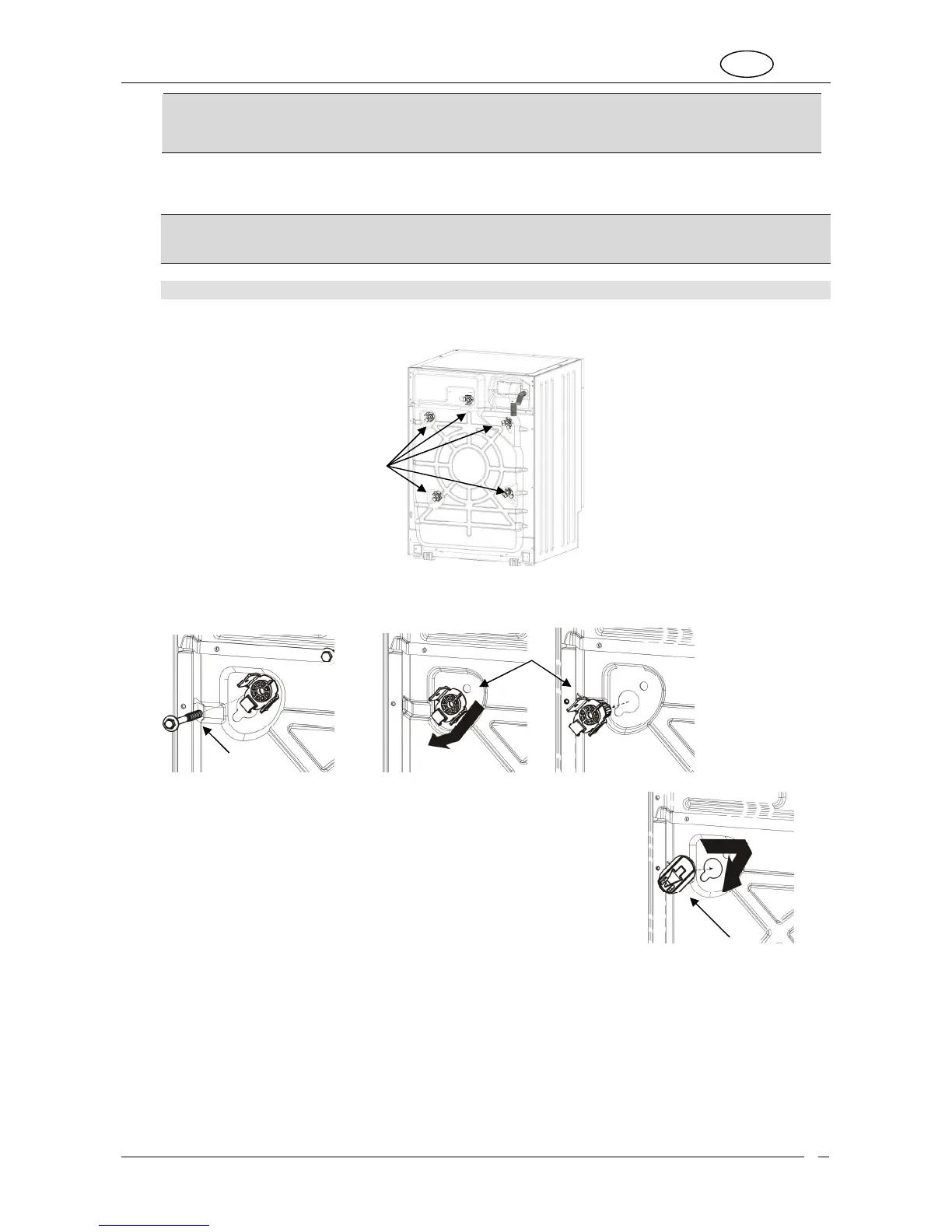 All the transport retainer fittings should be kept in a safe place; they must be fitted again if the appliance has to