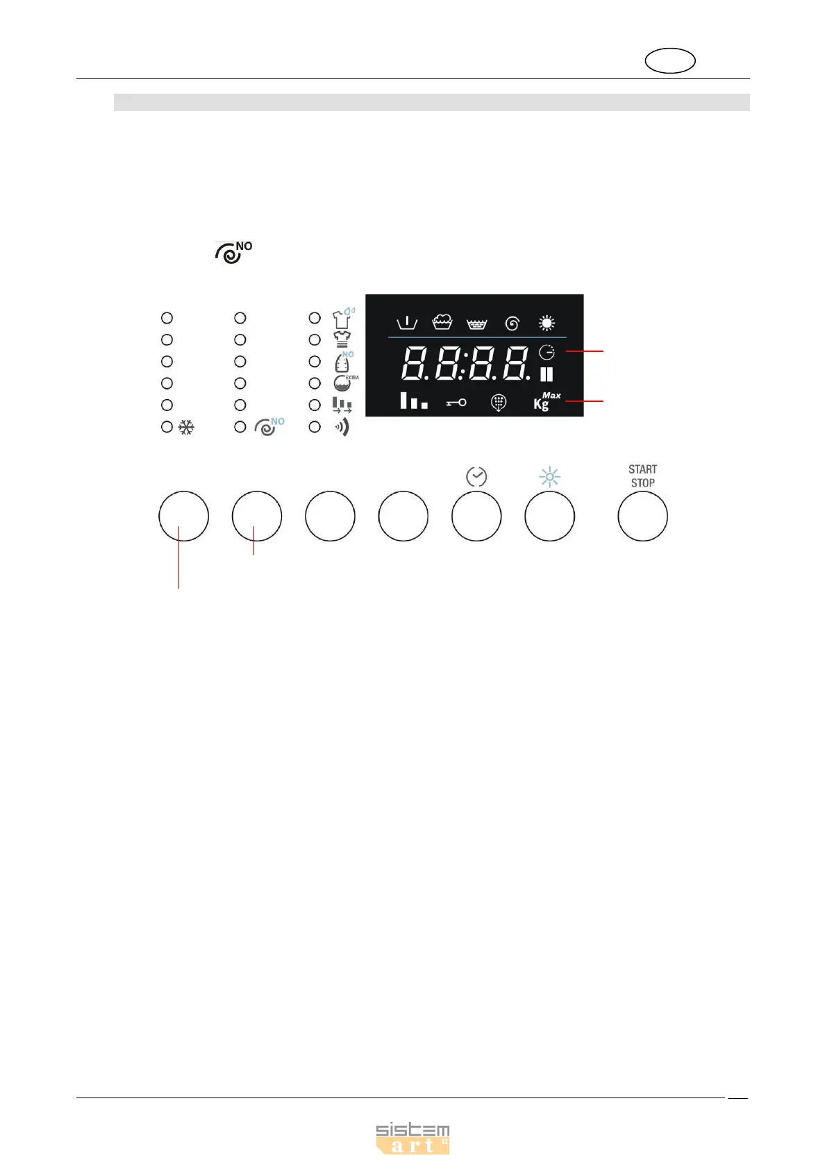 weight for the selected programme alternate on the display. The symbols on the display light up to identify the